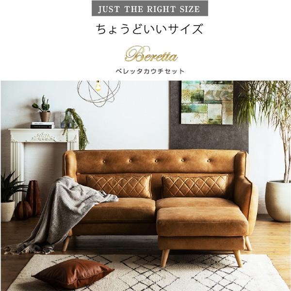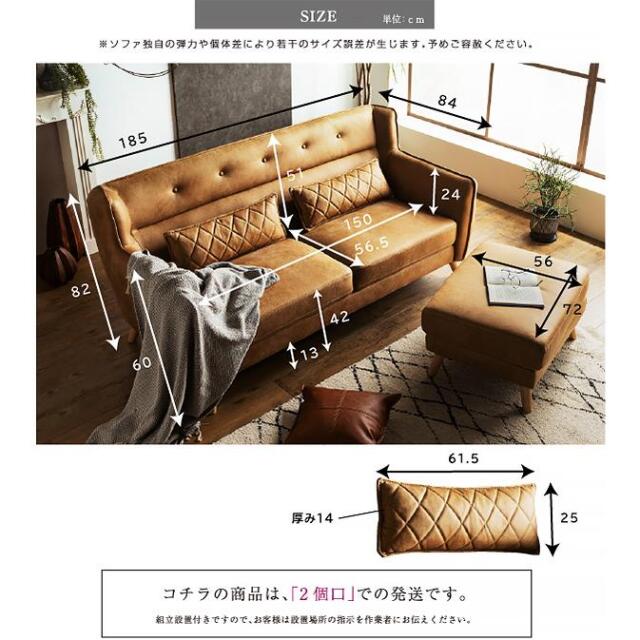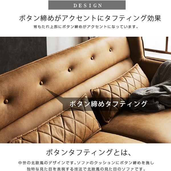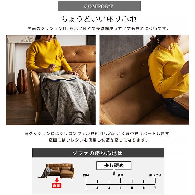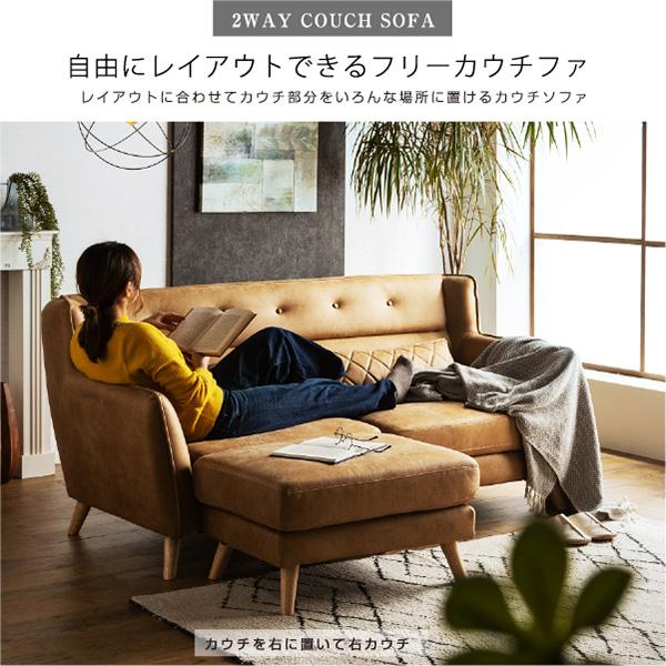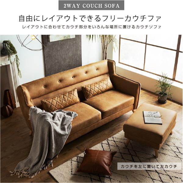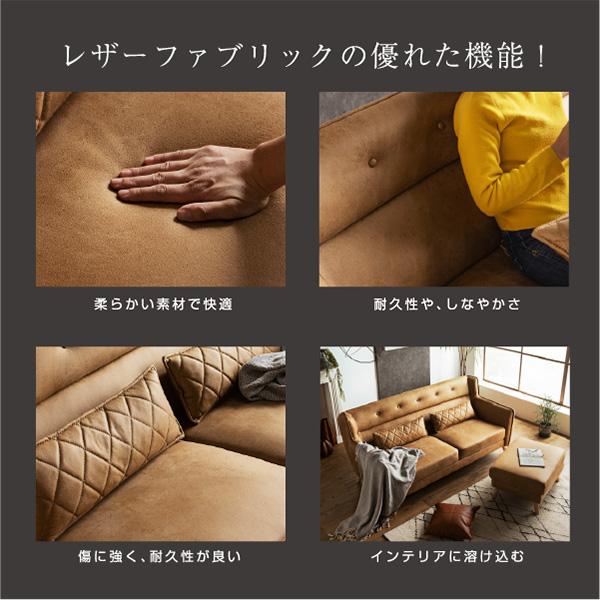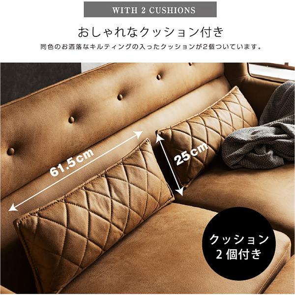 ・レザーファブリックの手触りが気持ちいいです。 ・人気の新素材レザーファブリックを使用したカウチソファーです。 ・キルティングの入ったお洒落なクッション2個付き ・背もたれ上部のボタン締めがアクセントになってます。 ・座りは少し固め |