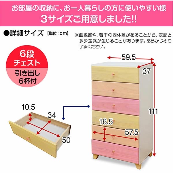 | 型 | 6段ハイチェスト/4段ローチェスト/3段ローチェスト |