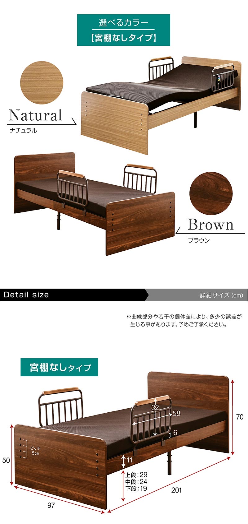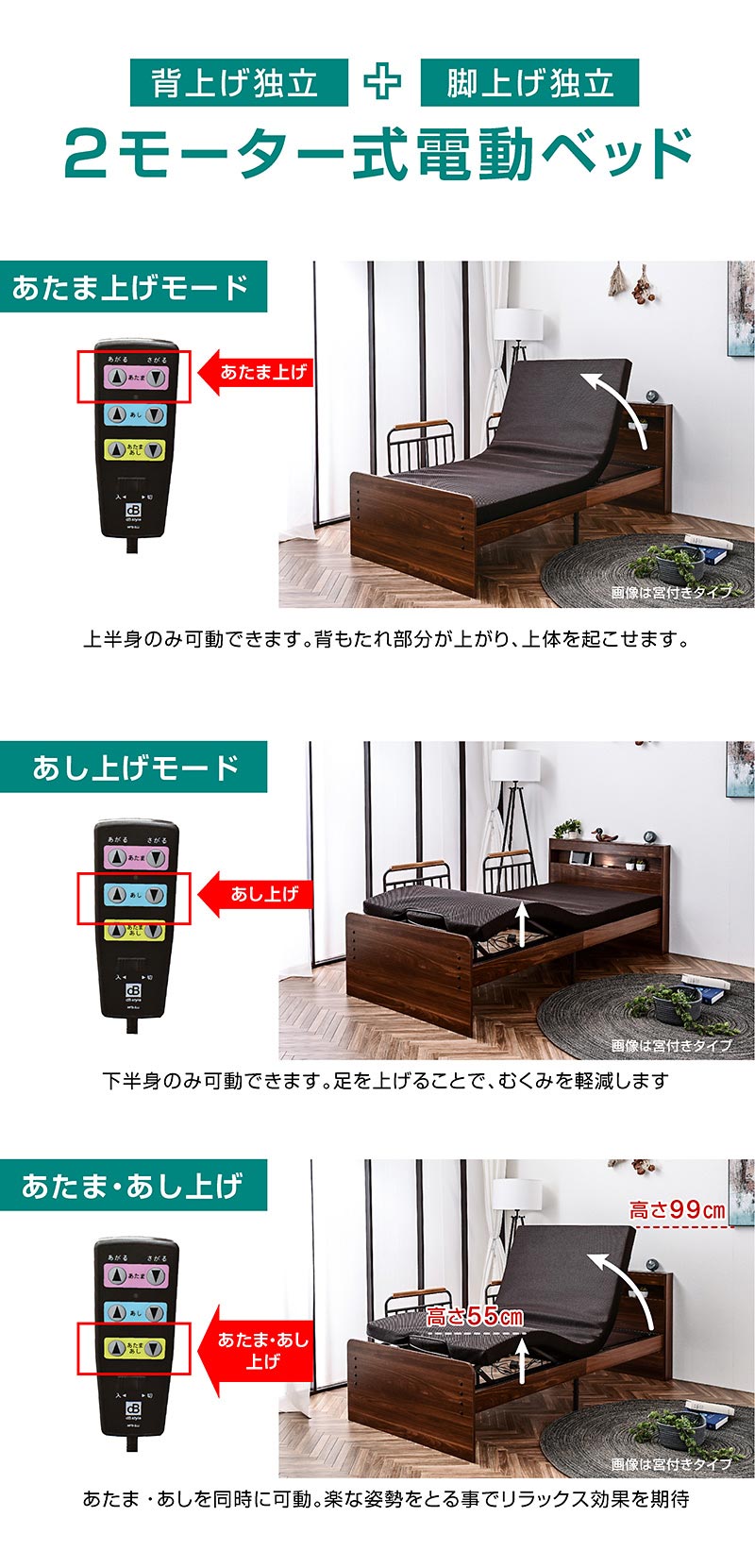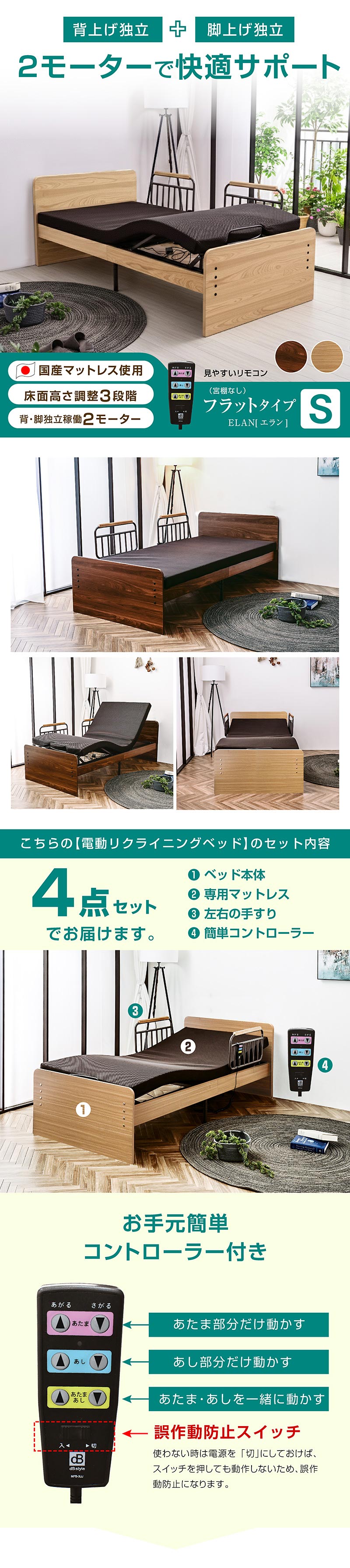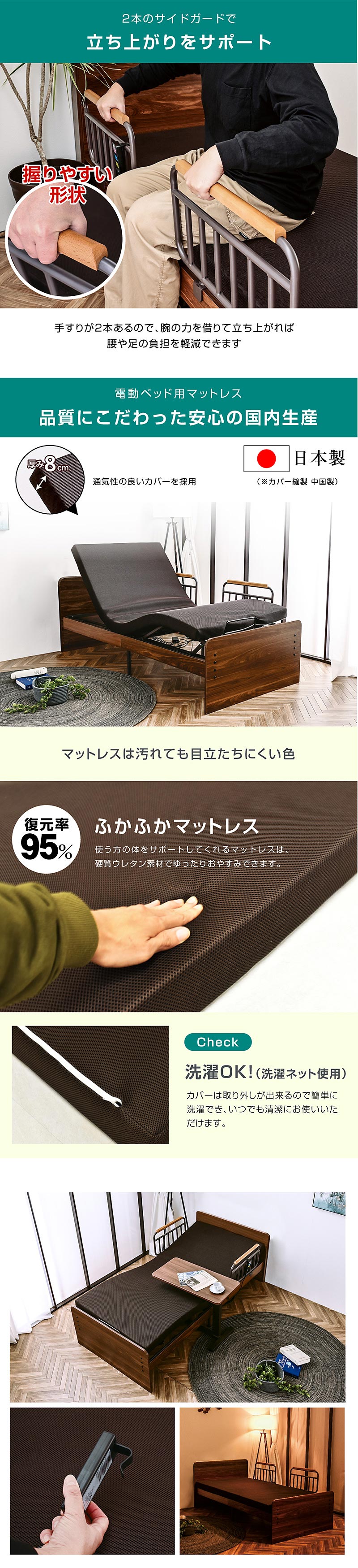 | 製品名: | 電動ベッド 介護ベッド 2モーター 手すり 高さ調整 国産マットレス付き シングル 木目 エラン 非課税 |