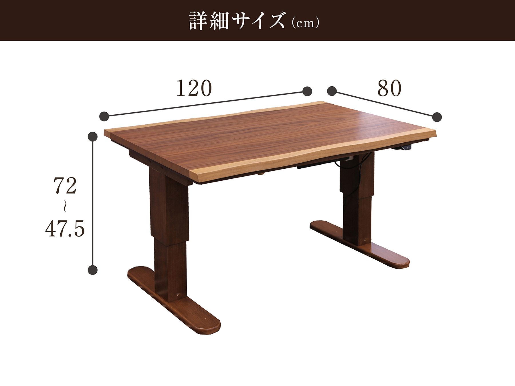 | サイズ | 幅120×奥行80×高47.5-72(cm) |
