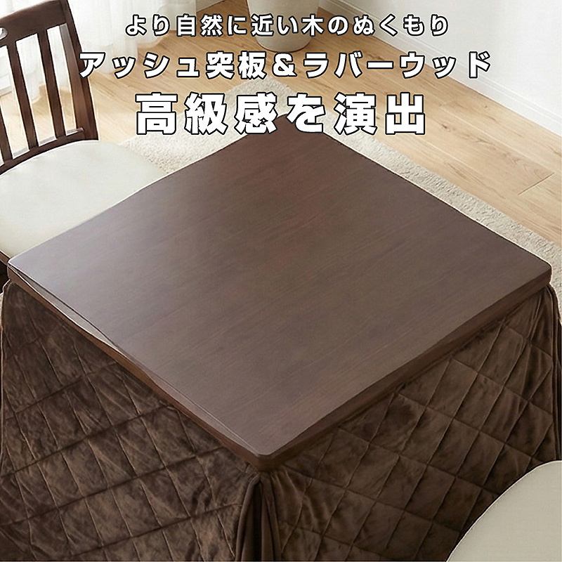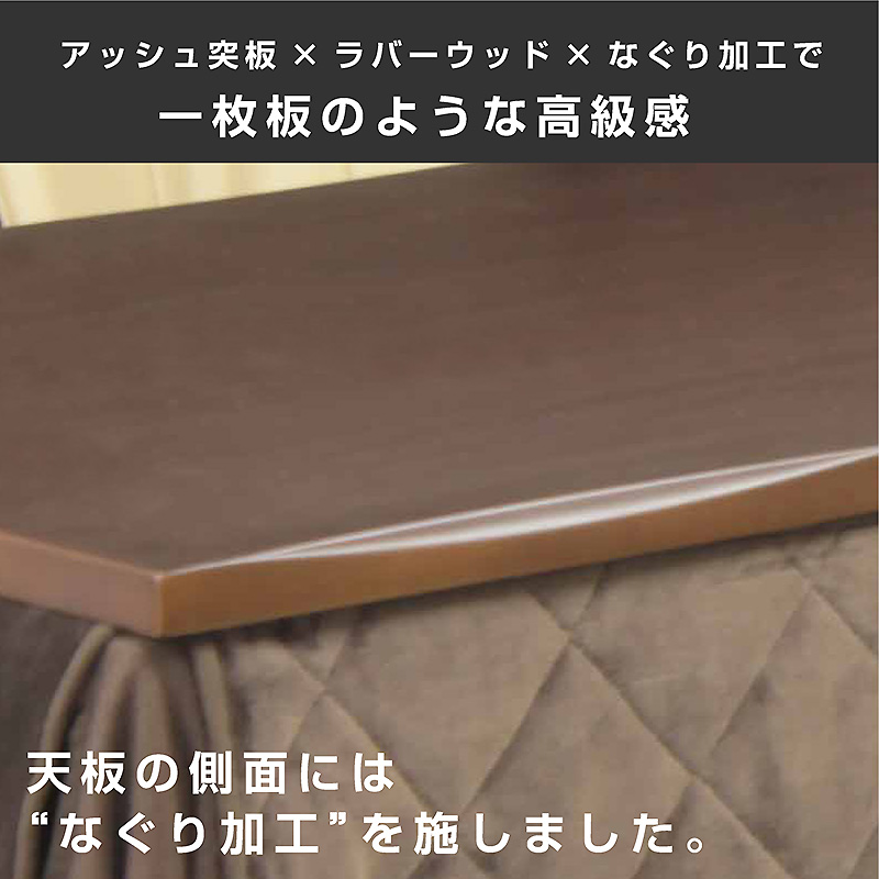 | 材質・仕様 | 【テーブル】アッシュ突板、ラバーウッド ウレタン塗装 【チェア】ラバーウッド・PVC・アミノ塗装 【こたつ掛け布団】ポリエステル100%・天板固定用穴あり・収納ポケット |