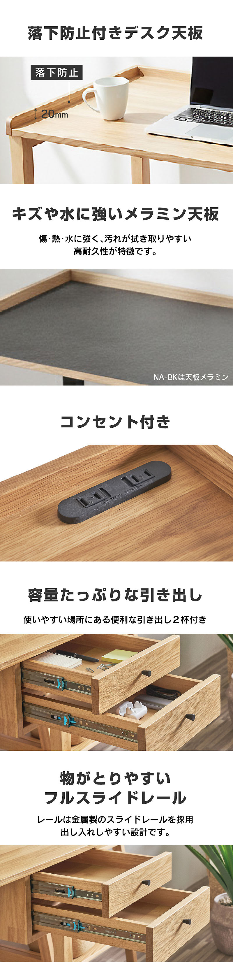 | 材質 | NAは天然木(オーク突板、ラバーウッド) ※NA-BKは天板メラミン |