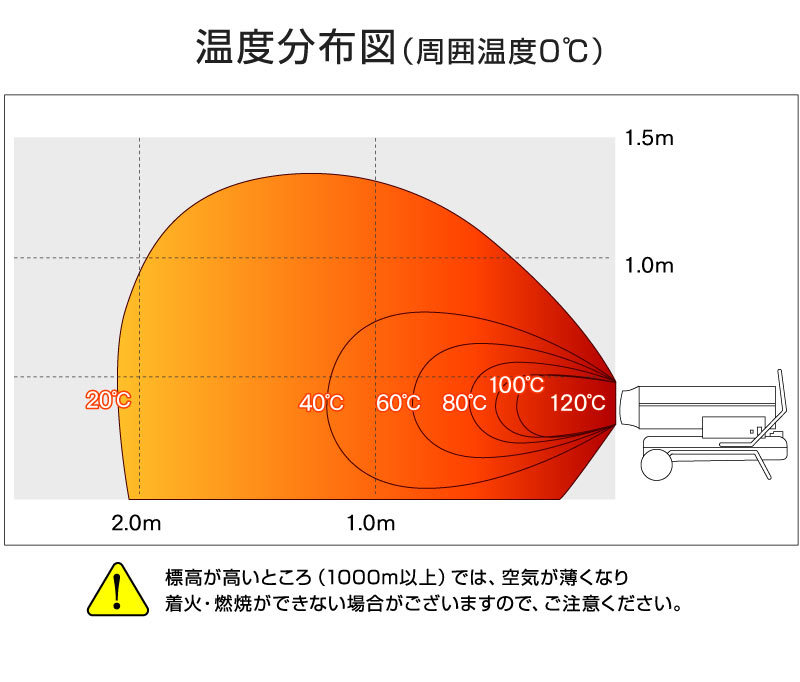 | 特徴 | ・急速点火で使いたい時にすぐ使えます ・電磁ポンプ送油方式採用で、従来より安定燃焼・低騒音! ・建設、土木現場、イベント会場、物流倉庫、工場などの暖房に最適 ・ハウス、建設現場でのコンクリートの凍結防止 ・内装や塗装、塗料の乾燥にもお使いいただけます ・必要な場所だけを暖めるため効率的 ・便利なハンドル、キャンスター付きで、移動も簡単 ・上下15度に吹出角度が調節可能です ・安心・安全装置内蔵 ・停電安全装置、耐震自動消火装置、燃焼制御装置、点火安全装置、不完全燃焼防止装置、過熱防止装置 ※標高が高い所(1000m以上)では、空気が薄くなり着火・燃焼ができない場合がありますのでご注意ください。 ※灯油以外は絶対に使用しないでください。 ※こちらの商品は配送先が企業様のみとなっております |