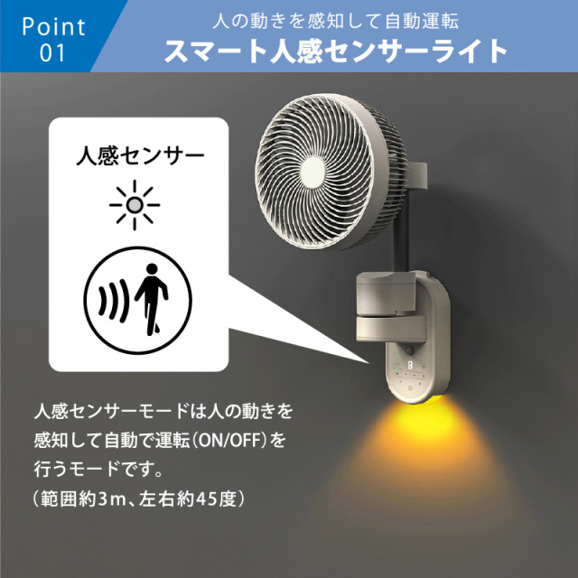 | 製品名: | 壁掛け式 人感センサー ライト付き サーキュレーター 【SKJ-SY21WDC(WH) 】 |