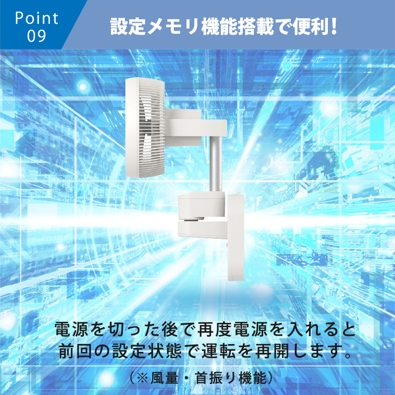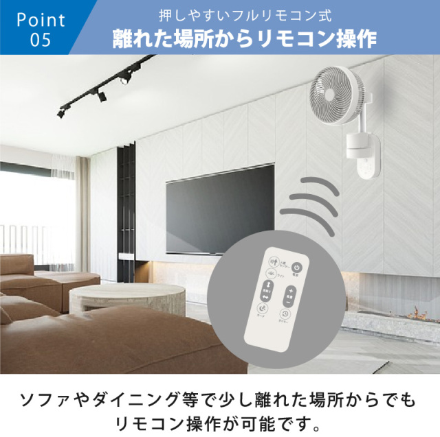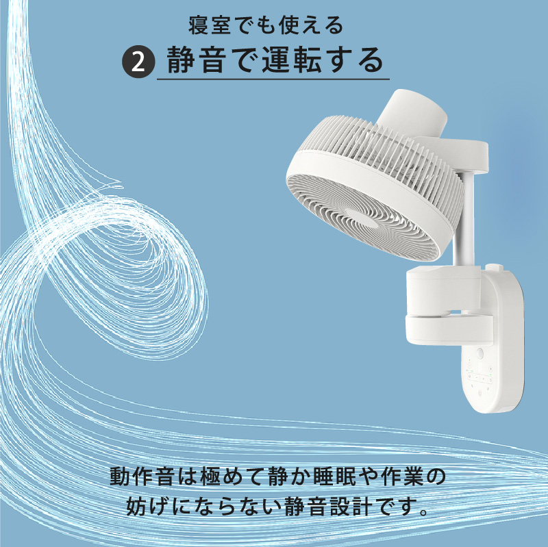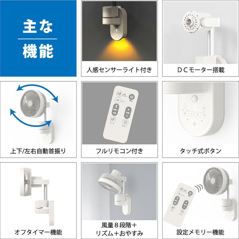 | タイプ | 壁掛けサーキュレーター (DCモーター/フルリモコン/LEDライト/人感センサー) |