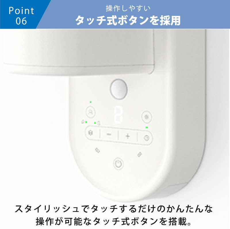 | 特徴 | ・スマート人感センサー搭載!自動ON/OFFで省エネ! ・DCモーター搭載!DCの良い3大特徴! ・上下左右自動首振りで広範囲に対応! ・フルリモコン付き! ・使いやすいタッチ式ボタンを採用! ・便利なオフタイマー機能付き! ・風量調節8段階+リズム+おやすみ運転で快適! ・インテリアライト搭載! |