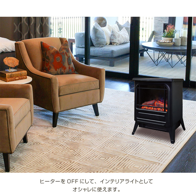 | 特徴 | ・選べるエコ温風2段階切替(1000/500W) ・サーモスタット搭載 温度調節可能 ・レトロな暖炉デザイン ・熱に強い金属製本体構造 ・リアルな疑似暖炉炎ギミック |