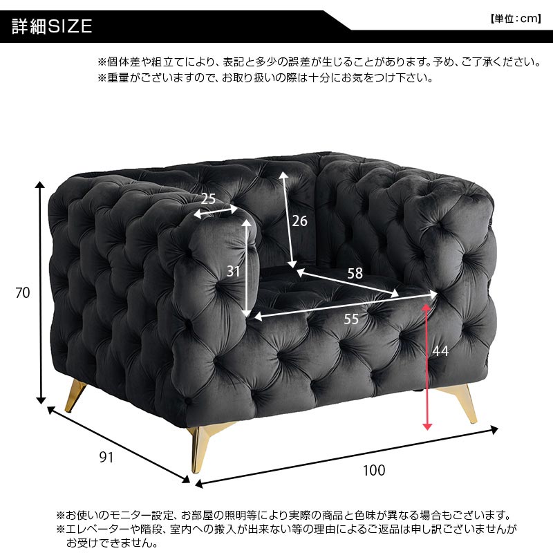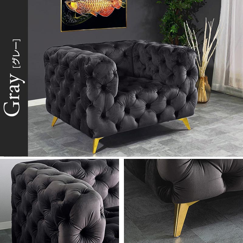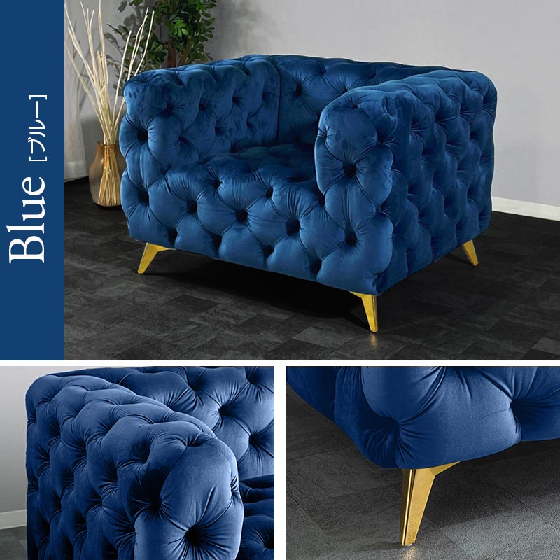 ・手触りのよいベルベッド採用。光沢のある生地で高級感溢れます。 ・座面はSスプリングとウェービングベルトのW構造で、へたりにくい作り ・耐久性があるので長くお使い頂けます。 ・英国アンティークのチェスターフィールドを、そのままコンパクトに再現 ・上質で高級感のある英国伝統のスタイル ・ベルベッド生地とスチール脚の組み合わせ、異素材を愉しめます ・金色の脚は取り外し可能、ロータイプとしてもご使用頂けます。 |