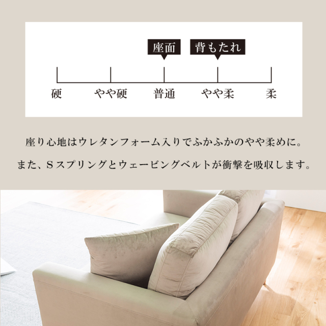 | 材質 | ・ベルベット生地 ・ウレタンフォーム ・ウェービングベルト ・Sスプリング |