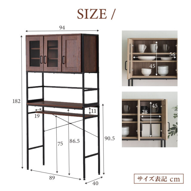 | サイズ | 幅94×奥行40×高さ182(cm) 【ガラス扉内】幅56×高さ45(cm) 【ウッド扉内】幅28×高さ45(cm) |