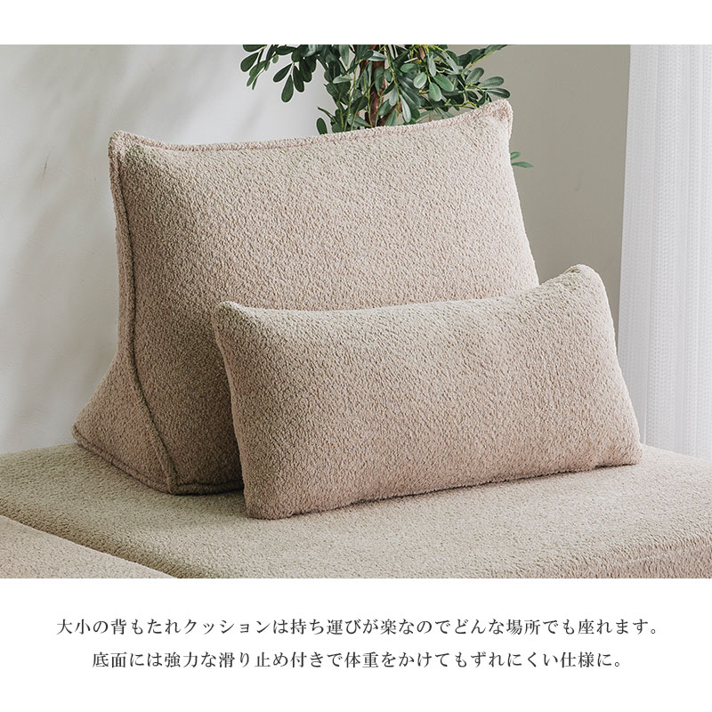 | 特徴 | ※ソファベッド×1、背クッション×2は各色お選びいただけます ・もこもことした肌触りで高級感もあり、見た目からフェミニンで暖かさを感じさせるブークレー生地を使用 ・リビングとダイニングを仕切る、間仕切りにもなる多機能ソファ ・クッションを外せばソファベッドに早変わり ・クッションの底面には強力な滑り止め付きで体重をかけてもずれにくい仕様に ・座面はちょうどいい沈み込みで長時間座れて快適 ・シャープな印象の黒スチール脚とフェミニンな生地で甘辛スタイルに ・お掃除ロボットがスムーズに通るためのスペースがあります |