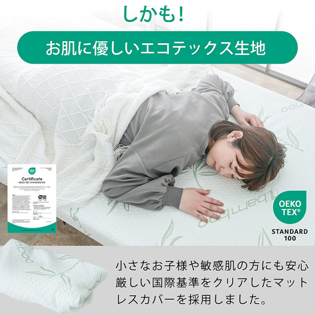 | 特徴 | 【輸入品】 ・リバーシブルで低反発と高反発で使える ・竹炭消臭効果マットレスカバー ・凸凹が気持ちいいプロファイル加工 ・カバーは、外して丸洗いOK ・ロール状の梱包で届くのでコンパクト。お部屋への搬入が楽々です ・二段ベッドやシステムベッド等にも最適 ・エコテックス規格にクリアした、人・環境に優しい製品です |