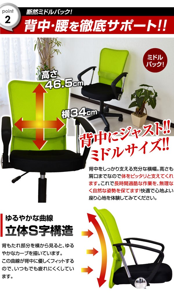 オフィスチェア パソコンチェア ロッキングチェア 送料無料 メッシュで快適な使い心地、デザイン、価格で選ばれています 組立簡単。 特徴 作業時間約10分の簡単組立 コンパクトで丁度良いサイズ 背もたれの美しい曲線が、背中・腰を優しくサポート 座面はメッシュ素材で長時間の作業も快適 リクライニング・ロッキングやガス圧昇降の基本性能もバッチリサポート 選べる6色 輸入品 組立式 材質 ポリエステル/ナイロン/スチール サイズ 幅55×奥行58.5×高さ87〜98(cm) 座面高さ:43〜54(cm) 色 ブラック グリーン オレンジ ブルー グレー レビューには旧型も含まれます。ご了承ください。 送料 送料無料 ただし、北海道・沖縄地域は追加送料が必要となります。(離島は別途お見積り) また、開梱設置サービスをご利用の場合、送料とは別に料金が必要です。ご注文前にお問い合せください。 追加料金が必要な場合、買い物カゴでは再計算されません。料金確定後、こちらからご連絡させていただきます。