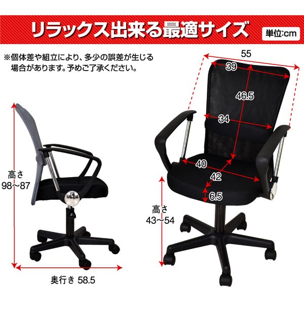 | サイズ | 幅55×奥行58.5×高さ87〜98(cm) 座面高さ:43〜54(cm) |
