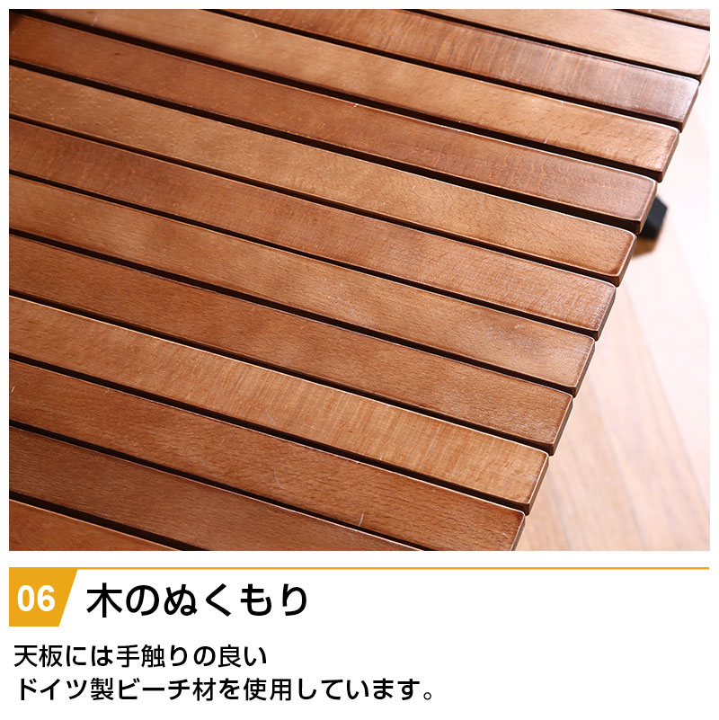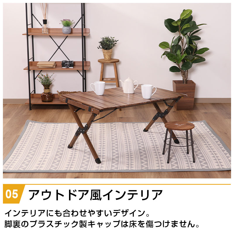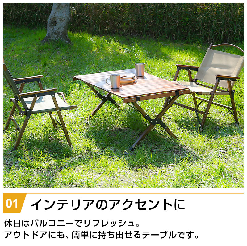 | 特徴 | ・アウトドアにも使えて簡単に持ち出せるテーブル ・ローチェアと相性のいい高さ ・折りたたんで厚さ9.5cmまでコンパクトに ・重さ6.1kgと見た目と比べて軽量 ・4人でも使用できる程よいサイズ感 ・天板には手触りの良いドイツ製ビーチ材を使用 |
