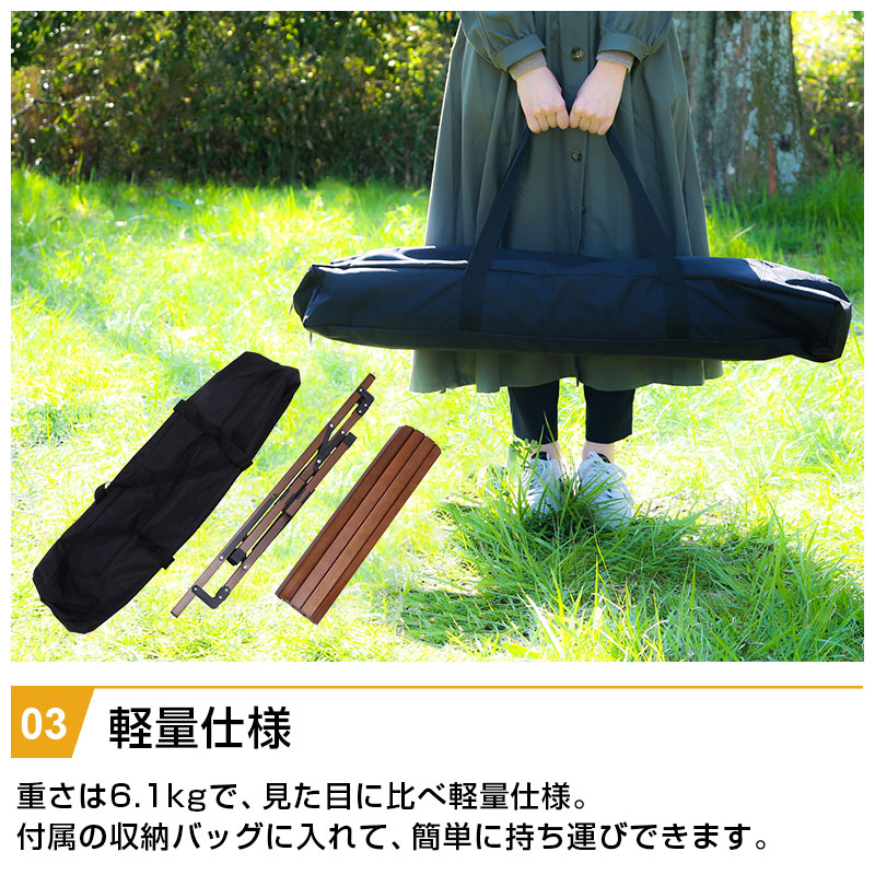 ■カラー ダークブラウン ■サイズ(cm) 幅90×奥行60×高さ44 耐荷重(天板):20kg ■重量 6.1kg ■材質 甲板の表面材:天然木(ビーチ) 構造部材(脚部):アルミニウム/スチール 専用袋:ポリエステル100% 実物に近い状態で撮影していますが、撮影時の光の加減やお客様のPC設定により若干の色合いが異なる場合がございます。 曲線部分や若干の個体差により、多少の誤差が生じることがございます。予めご了承ください。 【送料無料】 ただし、北海道・沖縄・離島は追加送料が必要となります。 ※追加料金が必要な場合、買い物カゴでは再計算されません。料金確定後、こちらからご連絡させていただきます。 【キーワード】 BBQ 海水浴 川遊び 釣り バーベキュー キャンプ ピクニック お花見 コンパクト チェア バルコニー 庭 テラス 戸建て 一戸建て マンション おうちキャンプ 遠足 休憩所 釣り堀 海釣り 川釣り プレゼント ギフト アウトドア家具