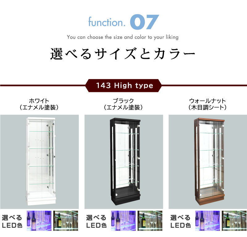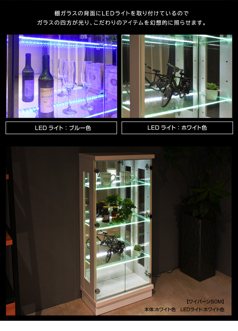 【ほぼ完成品】 ・センスのいいスタイリッシュなコレクションボード ・大切なコレクションを優雅に美しく演出 ・お部屋のテイストに合わせやすい3カラー対応です。 ・ミラー張りの背面で空間を引き立てるコレクションボードです ・ハイタイプで収納力抜群。 ・4枚のガラス棚板付き 9cmピッチで12段階高さ調節可能 ・LEDライトは、ブルーまたはホワイトの2色からお選び頂けます ※配達時、LEDライトは本体の下に収納されています。 ※棚板の追加販売や棚板のみの販売は致しておりません。 |