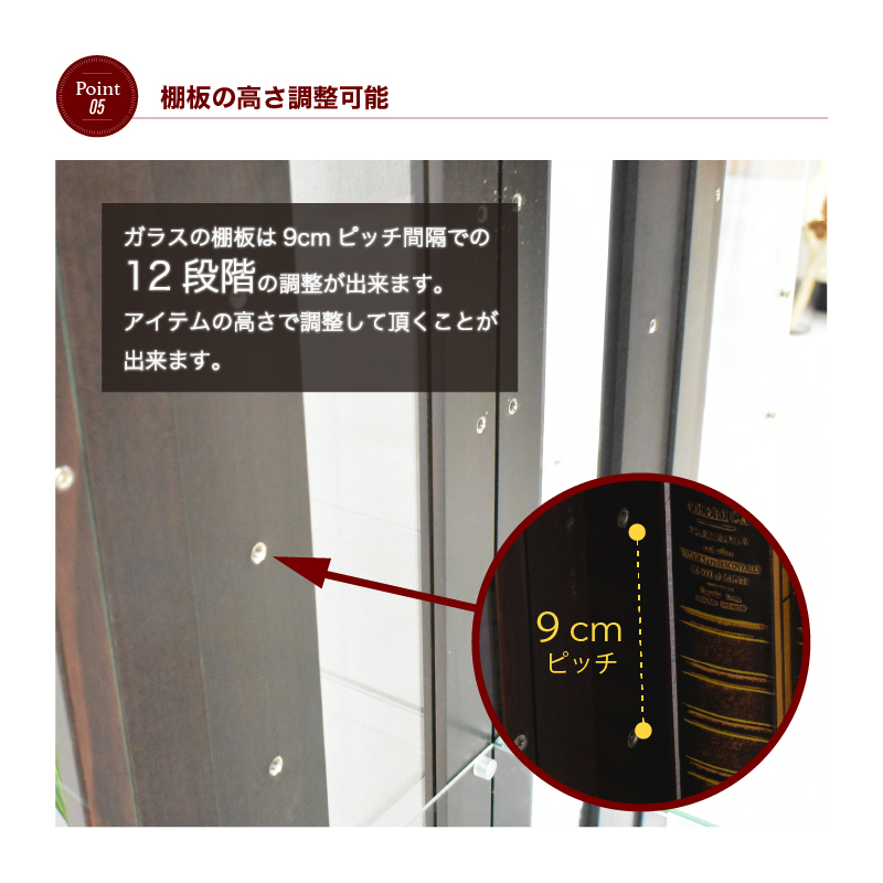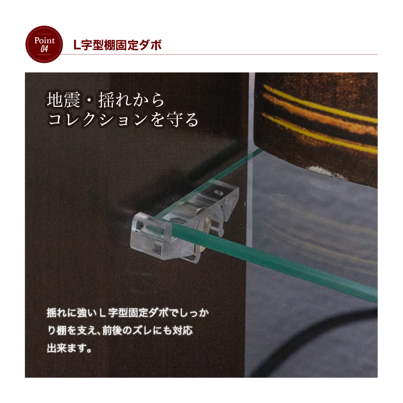 【ほぼ完成品】 ・センスのいいスタイリッシュなコレクションボード ・大切なコレクションを優雅に美しく演出 ・お部屋のテイストに合わせやすい3カラー対応です。 ・ミラー張りの背面で空間を引き立てるコレクションボードです ・4枚のガラス棚板付き 9cmピッチで12段階高さ調節可能 ※LEDライトは付属しておりません ※棚板の追加販売や棚板のみの販売は致しておりません。 |