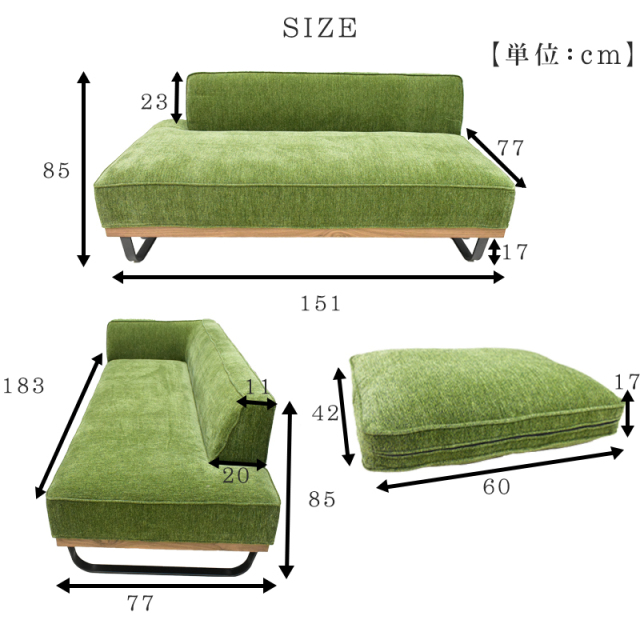 【商品サイズ】 本体:幅228×高さ66-85×奥行183(cm) 2Pソファ:幅151×高さ66×奥行77(cm) カウチ:幅77×高さ66×奥行183(cm) クッション:幅60×高さ42×奥行17(cm) 【梱包サイズ】 2個口 幅80×高さ185×奥行53(cm) 幅80×高さ151×奥行53(cm) |