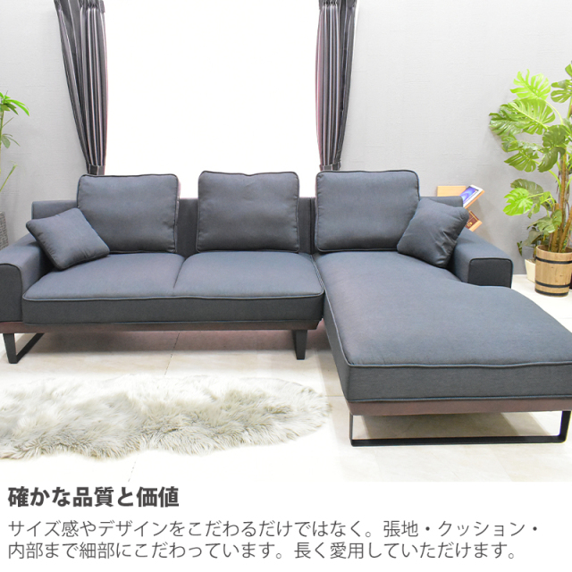 ・高級感を感じさせるカウチソファー ・座り心地にこだわった弾力 ・確かな品質と価値 ・脚はスチール脚。面でしっかり支える構造 ・カバーは取り外し可能で洗濯できます |