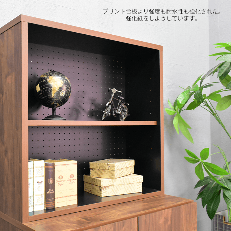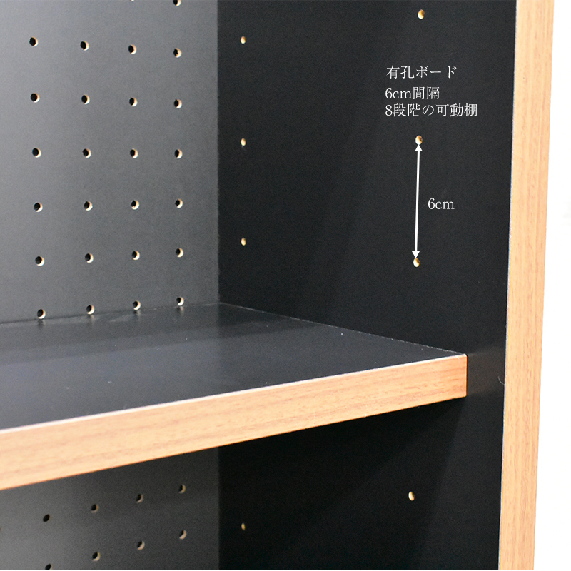・プリント合板より強度も耐水性も優れている強化紙を使用 ・有孔ボードは6cm間隔8段階の可動棚 ・キャビネットは6cm間隔6段階の可動棚 ・アジャスター脚なので高さ調整してガタつきを軽減できます ・転倒防止バンド金具付き |
