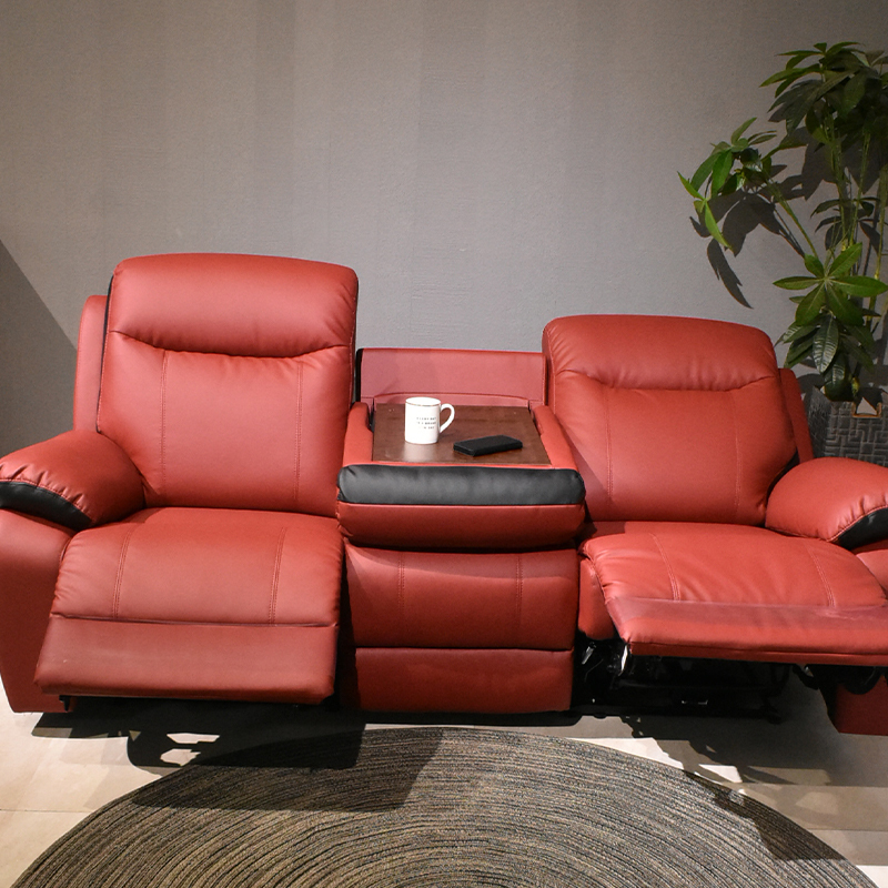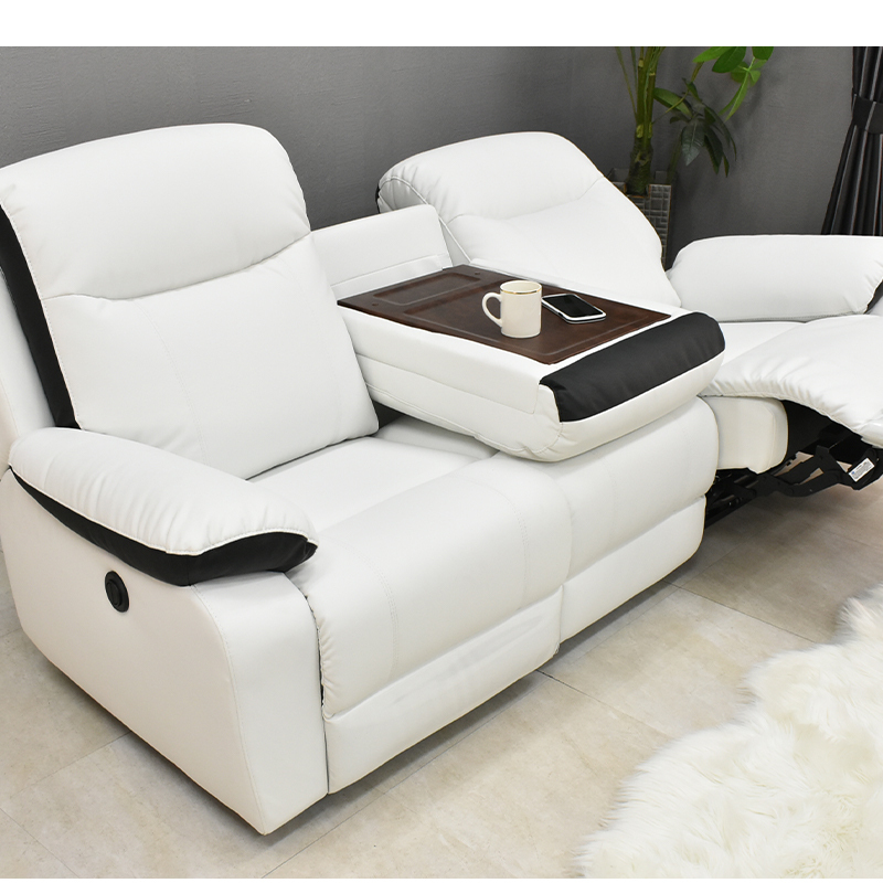 ・左右独立電動リクライニングソファ ・中央を倒すとテーブルとして活用できます ・ソフトレザーを使用しているので肌触りがいいです ・連結部があるので安定感あり ・置くだけでおしゃれな空間に |
