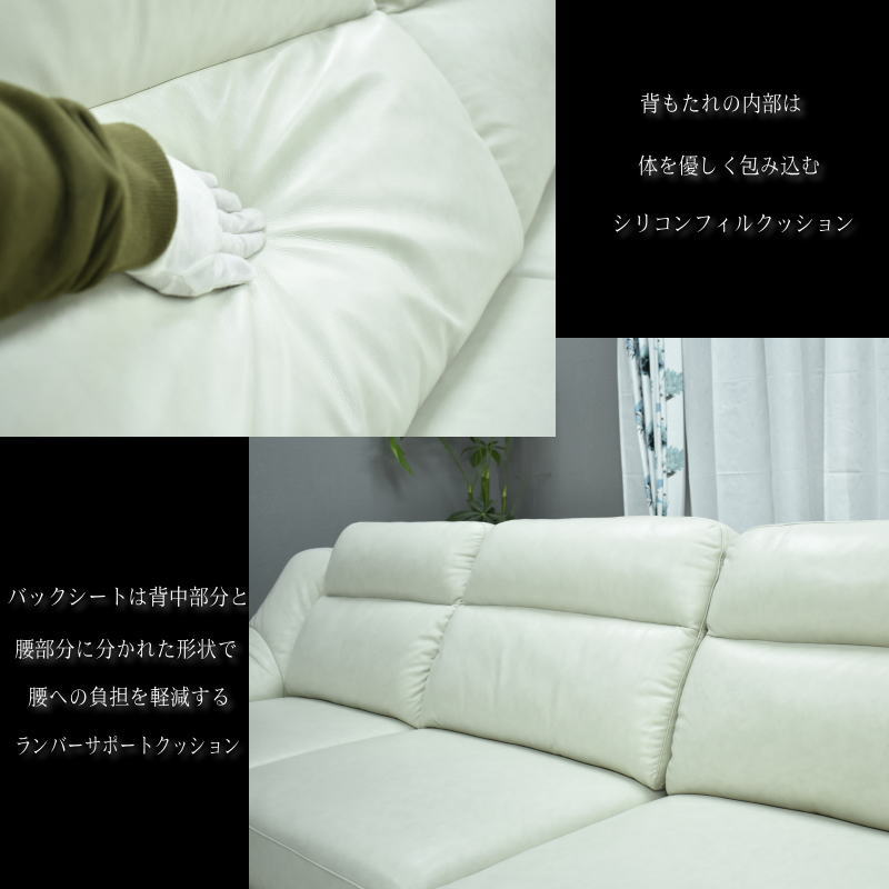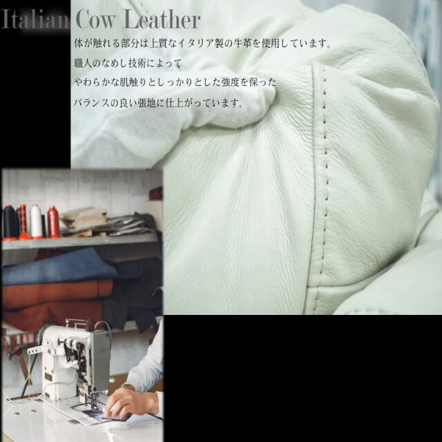 | 特徴 | カラーはブラック・マーブルホワイト・ネイビーブルーカラーになります。 背もたれにはシリコンフィルが入っており、ふっくらで柔らかい座り心地です。 革にはイタリアンレザーを使用しており、耐久性と柔軟性を持ち合わせております。 上質な本革なので使い込むほどに独特の風合いが出ます。 寝心地、座り心地、肌触り抜群の商品です。 見た目だけではなく、使い心地も共に良い商品です。 ※お使いのモニターや照明器具等で実際の色とは若干異なって見える場合もございます。 |
