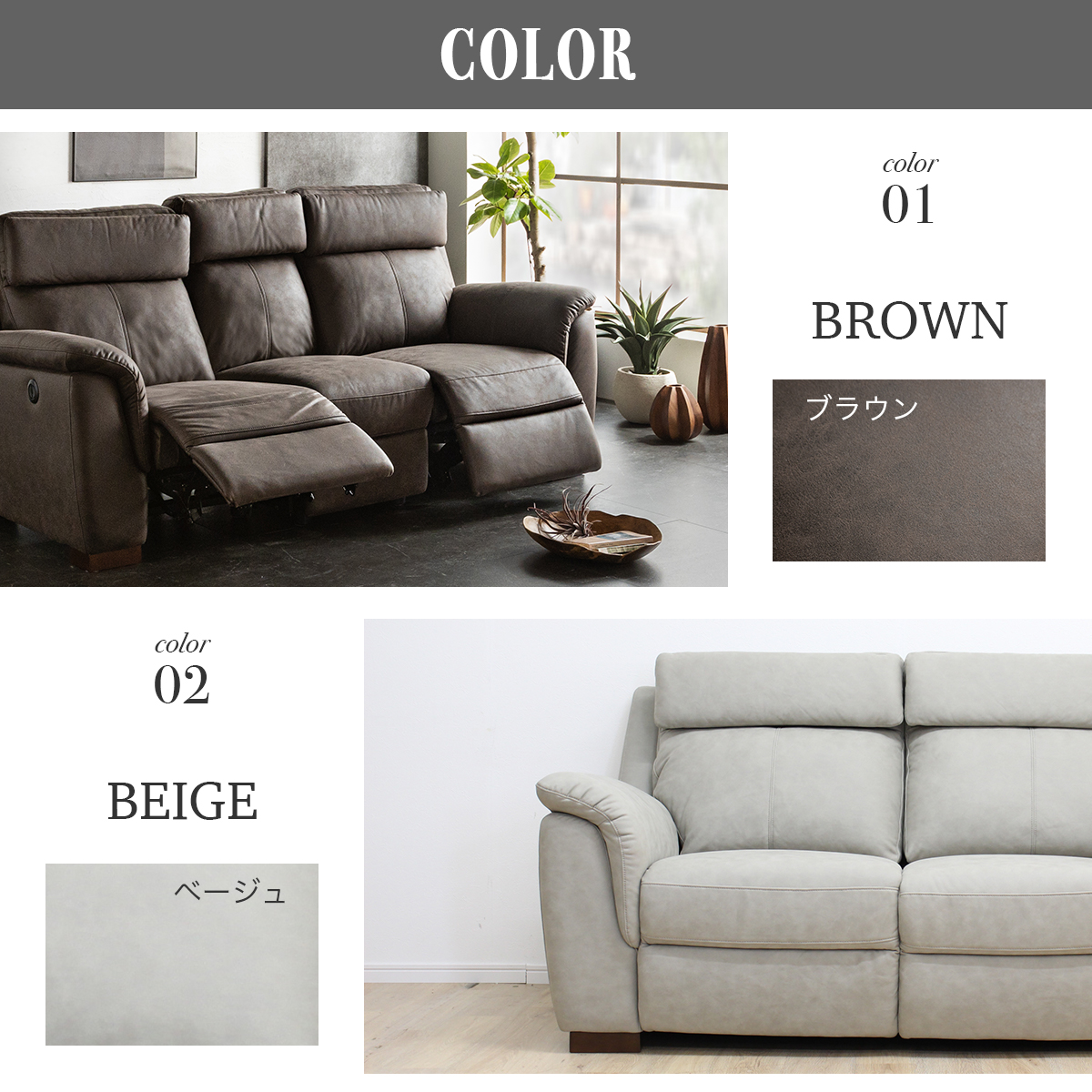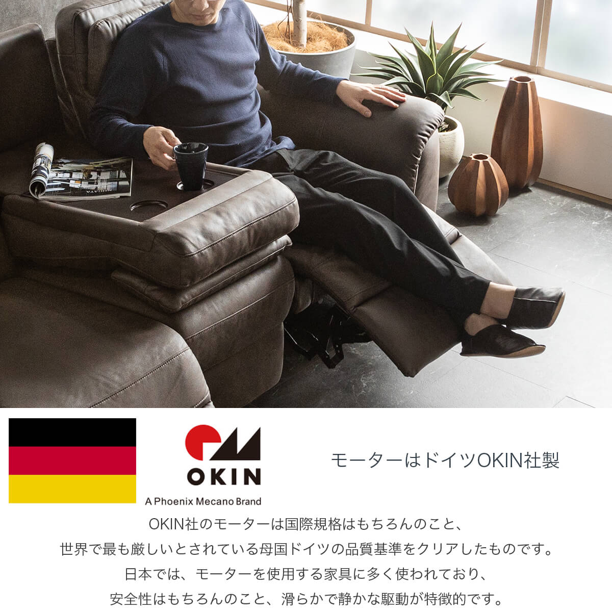 | 特徴 | ・NEWファブリックを採用 ・背もたれはシリコンフィル入りでふっくら柔らかです。 ・座面内部はウレタンフォーム+S字スプリング2重構造で 弾力のバランスが良く、 安定感もある硬さで座り心地抜群です。 ・サイドにスイッチが付いており、電動でリクライニング致します。 ・座った方のベストな体勢でおくつろぎ頂けます。 ・背もたれ中央を倒すと、カップホルダーつきのテーブルに早変わり。 |