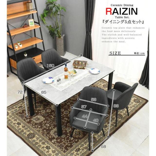 | 製品名: | ダイニングテーブル 5点セット RAIZIN-ART (テーブル+チェア4脚) |