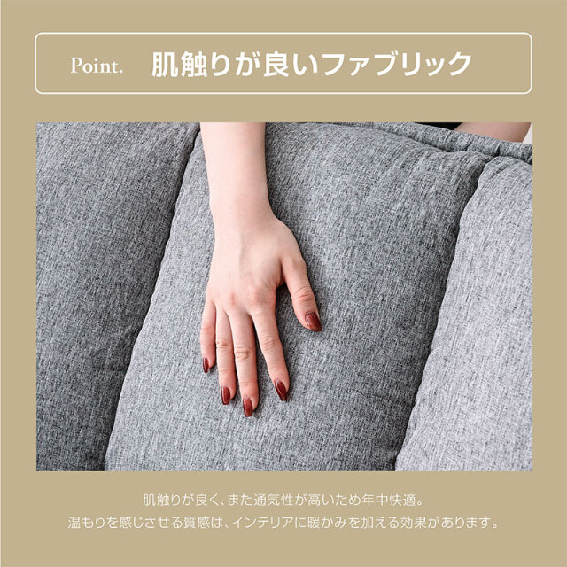 【完成品】 ・ふっくら極厚ボリュームのリクライニングソファ ・多彩なカラバリでコーデの幅もひろがる ・5か所×14段階リクライニングで自分だけのオーダーメイド ・どんなリラックス体勢でもホールド ・ソファにもベッドにもなる3WAYスタイル ・座面の高さは18cmで安心してくつろげる ・肌触りがよく、通気性が高いファブリック生地 ・コンパクトながらも余裕をもってくつろげるサイズ感 ・サッと広げて使えるため、来客用のソファとしても ・寒い季節はこたつ、その他の季節はローテーブルと相性抜群 ・ISO認定工場で生産だから安心の品質 |