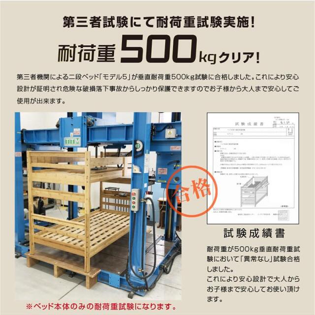 | 梱包サイズ | 【4-1(上下段ヘッド、フット)】104×77.5×21.5(cm) 24kg 【4-2(サイドフレーム)】200×15.5×12.5(cm) 19kg 【4-3(スノコ)】101×99.5×11(cm) 22kg 【4-4(ハシゴ)】133×37×9(cm) 6kg コード長さ:170~175(cm) |
