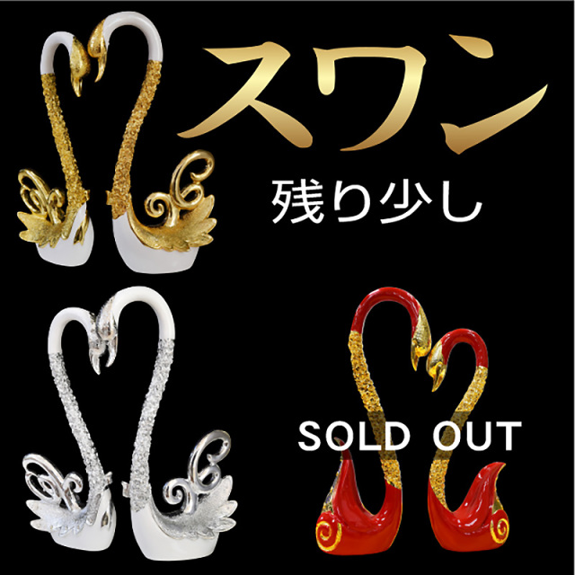 完成品 アウトレット インテリアにも映える置物シリーズ 風水好きな方には、運気アップのアイテムとしていかがでしょうか 風水の置物には、金運や開運・仕事運等・縁起物として運を引き寄せると言われています。 スワン・・4種のデザインをご用意。全てオスメスの対でのセットです。夫婦円満やお祝い等にいかがでしょうか 馬・・古来より神聖な動物とされる馬。迫力のあるフォルムは圧巻です。 ジャガー・・地位・仕事運を高める。金色は銀色とと合わせて使うと更に運気が上昇。 |
