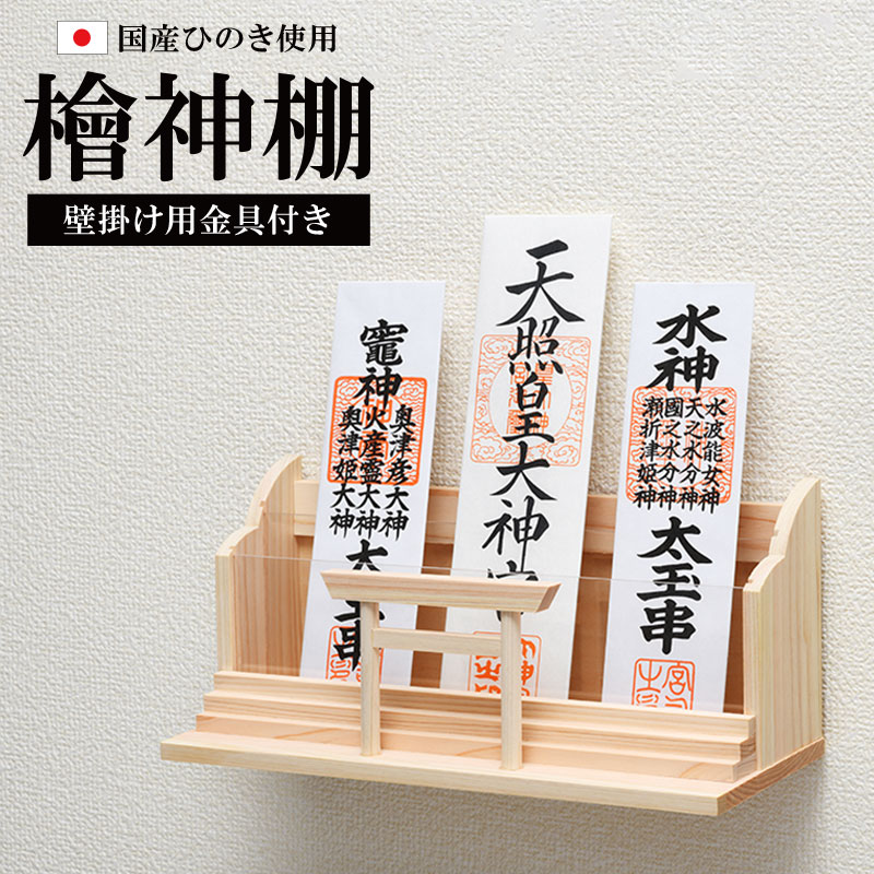 | 製品名: | 国産 ひのき ヒノキ 檜 桧 神棚 御札 御朱印帳 壁掛け 金具付き ミニ鳥居 三社 二段式 棚板 木製 小型 ミニ コンパクト 軽量 軽い 守 |