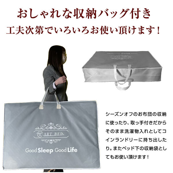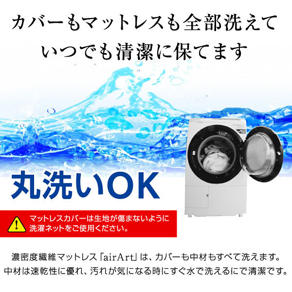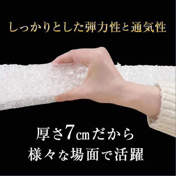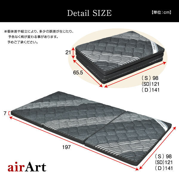 | サイズ | シングルサイズ:幅98×奥行197×厚み7(cm) 重さ:約9kg セミダブルサイズ:幅121×奥行197×厚み7(cm) 重さ:約11kg ダブルサイズ:幅141×奥行197×厚み7(cm) 重さ:約13kg |