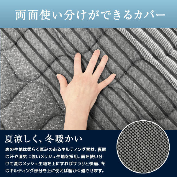 | 特徴 | 【輸入品】 ・マットレスの両側は普通、中央部分はやや硬めで体圧分散性が優れています ・優れた通気性と通水性で1年を通して快適 ・防ダニ、防カビやほこり軽減 ・リバーシブル仕様で冬は暖かい面、夏はメッシュ素材で涼しい面を選択でき年中快適 ・カバーは外して丸洗いOK、中材も洗えるのでいつでも清潔に保てます ・二段ベッドやシステムベッド等にも最適 ・コンパクト収納で持ち運びに便利 |