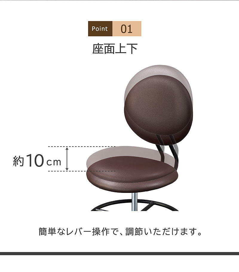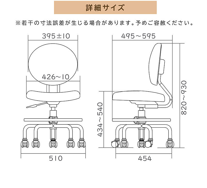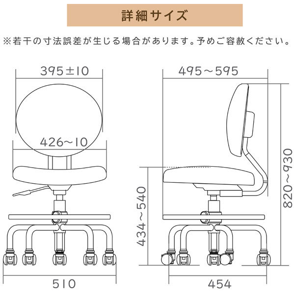 | サイズ | 幅49.5×奥行49.5-54.5×高さ82-93(cm) 座面高43.5-54.5(cm) |