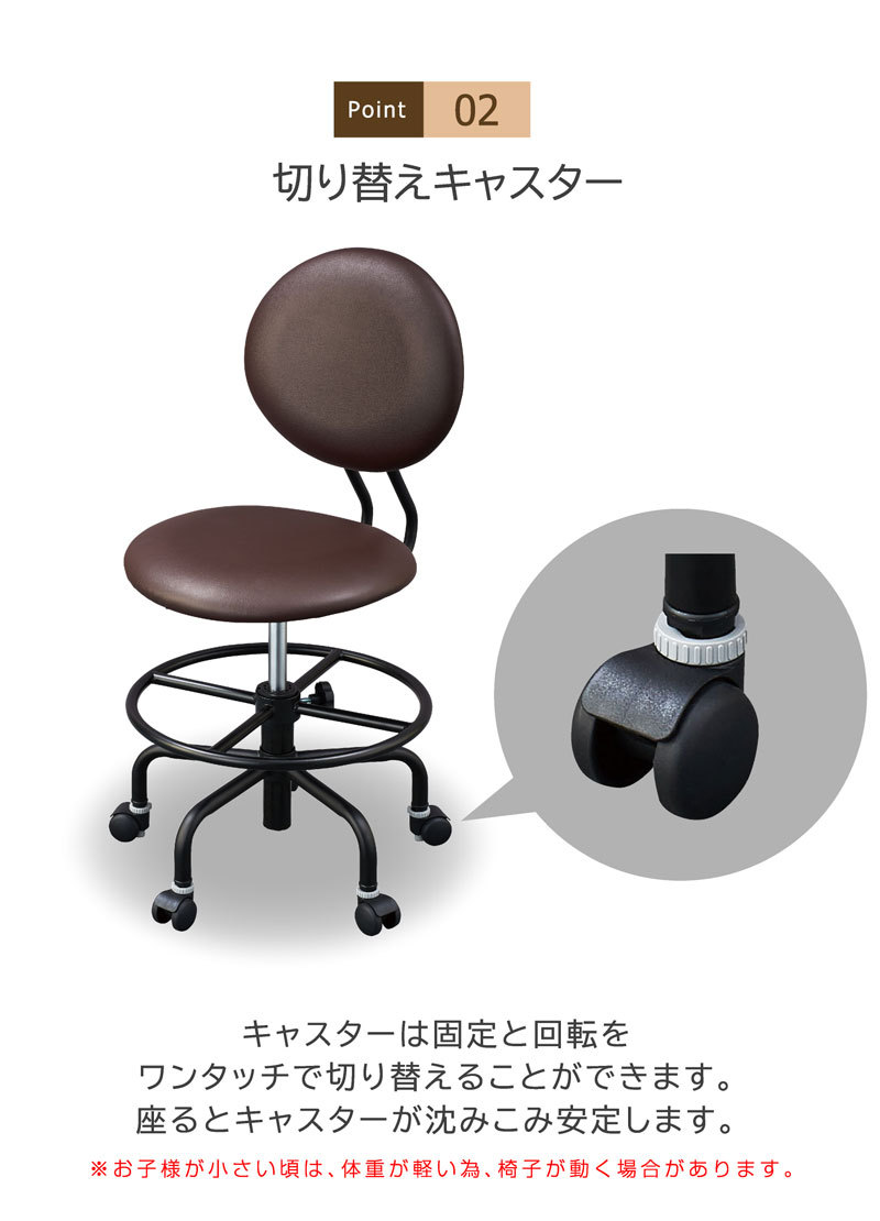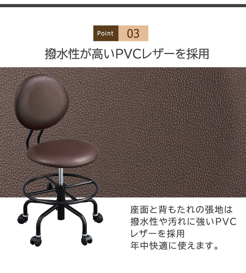 | 特徴 | ・スチールリングステップ ・切り替えキャスター ・360度回転 ・5本脚構造 ・脚 スチール ・カバー ポリプロピレン ・樹脂色 ブラック ・張材 PVCレザー ・クッション材 ウレタン |