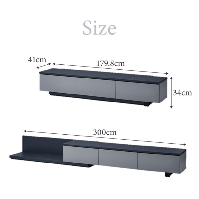 | サイズ | 【伸縮なし】幅179.8×奥行41×高さ34(cm) 【伸縮最長】幅300×奥行41×高さ34(cm) |