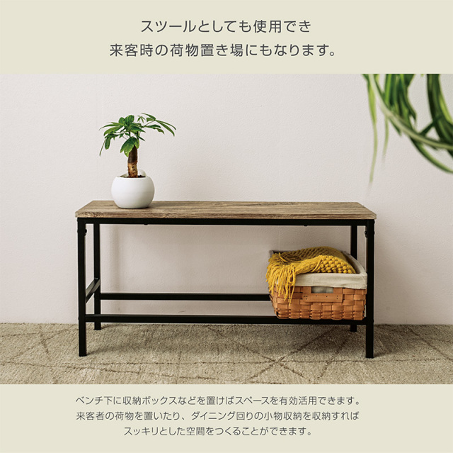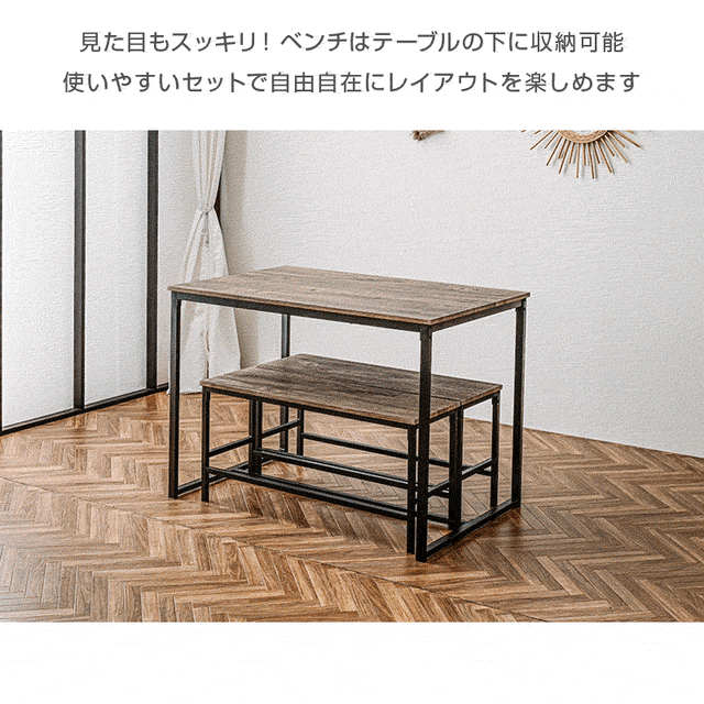 | サイズ | ダイニングテーブル:幅110×奥行70×高76(cm) ベンチ:幅90×奥行30×高43(cm) |