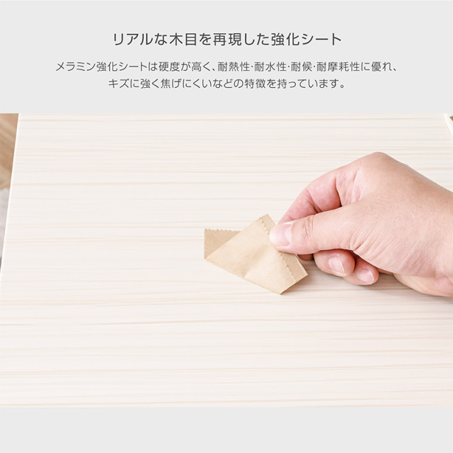 | 表面加工 | アッシュホワイト、ダークブラウン天板:両面PVC貼り ブラック天板:両面メラミンボード |