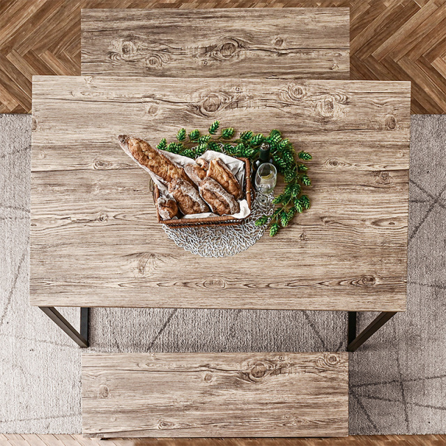 木目の表情を生かしたメラミン天板は耐水性に優れ、食事後もサッと拭くだけで清潔を保てます。直線的で無駄のないフォルムは空間に程よい余白を生み、配膳や片付けの動線もスムーズ。テーブル下へ収まるベンチは出し入れしやすく、来客時にも柔軟に対応できる使い勝手の良さが魅力です。脚部は粉体塗装のスチールでしっかりと支え、落ち着いたマットな質感がインテリアを引き締めます。アッシュホワイト、ブラウン、ブラックのベーシックカラーは北欧風からカフェ風まで幅広いテイストに調和。組立手順もわかりやすく、届いたその日から気持ちよく使い始められます。限られたスペースでも家族や友人との時間を心地よく演出する、頼れる一台です。