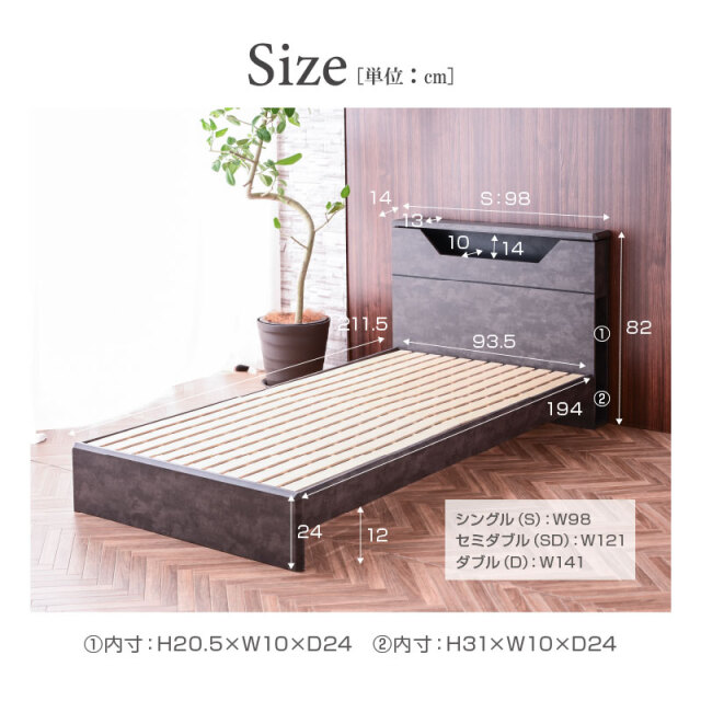 | 本体サイズ | 【シングル】幅98×奥行き211.5×高さ82(cm) 【セミダブル】幅121×奥行き211.5×高さ82(cm) 【ダブル】幅141×奥行き211.5×高さ82(cm) |