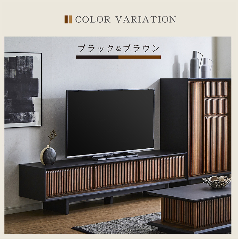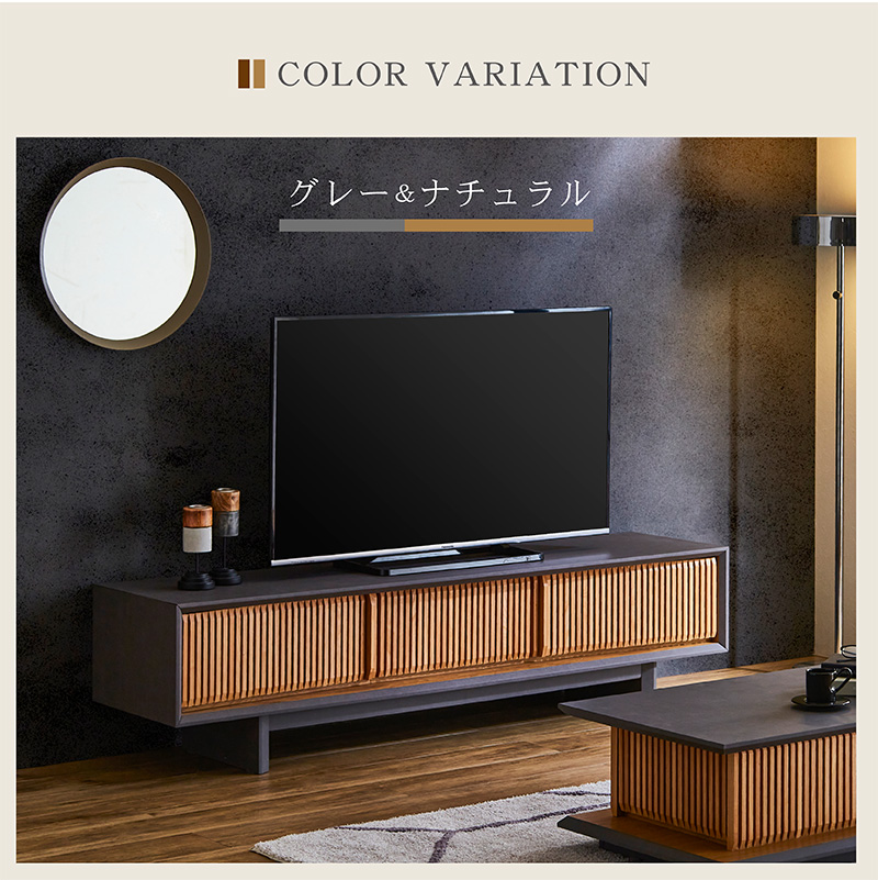 ■サイズ: (約)幅180×奥44×高45(cm) ■カラー: ・ブラック×ブラウン ・グレー×ナチュラル ■特徴: 【完成品】(中央補助脚のみ取り付け) ・センスのいい和モダンスタイル。 ・豊富なAV機器収納ができる ・引き出しにDVDやCD等を入れられる ・テレビボード上部に外付けハードデスクも置けます ・格子部と取っ手にはオーク無垢 【送料について】 ・送料無料 ただし、北海道、沖縄・離島へのお届けにつきましては送料無料対象の場合も追加送料が必要となります。 また、開梱設置サービスをご利用の場合、送料とは別に料金が必要です。ご注文前にお問い合せください。 追加料金が必要な場合、買い物カゴでは再計算されません。料金確定後、こちらからご連絡させていただきます。 ■ご注意: ※お使いのモニターや照明器具等で実際の色とは若干異なって見える場合もございます。