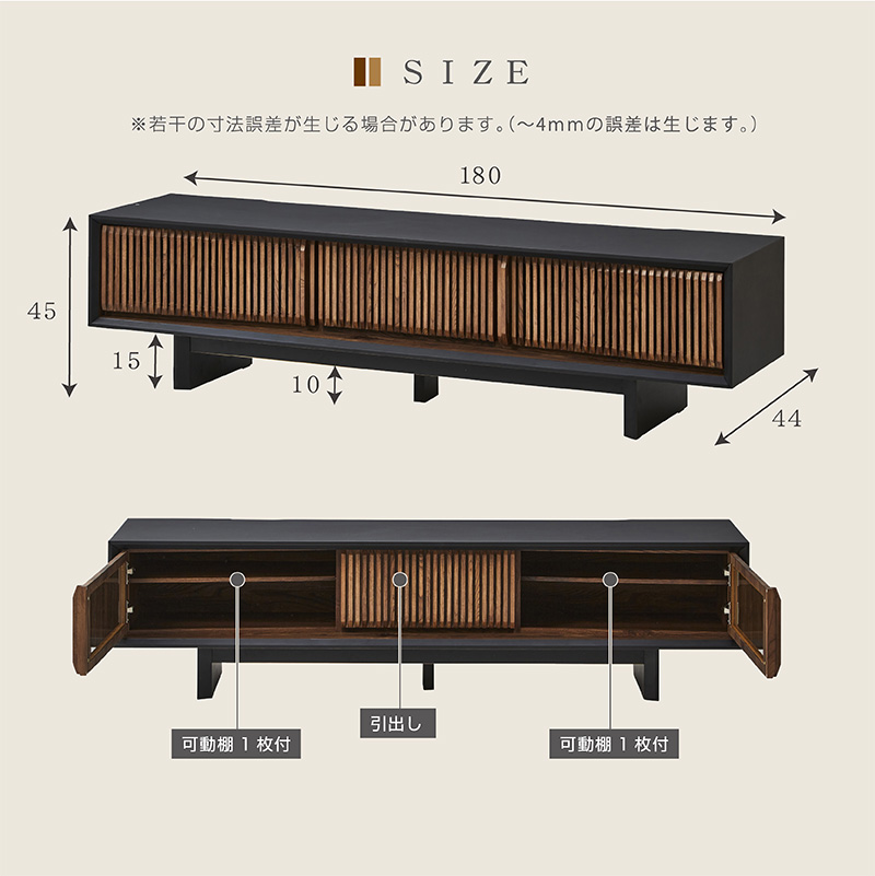 | サイズ | (約)幅180×奥44×高45(cm) |