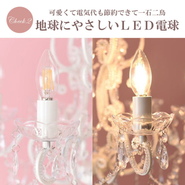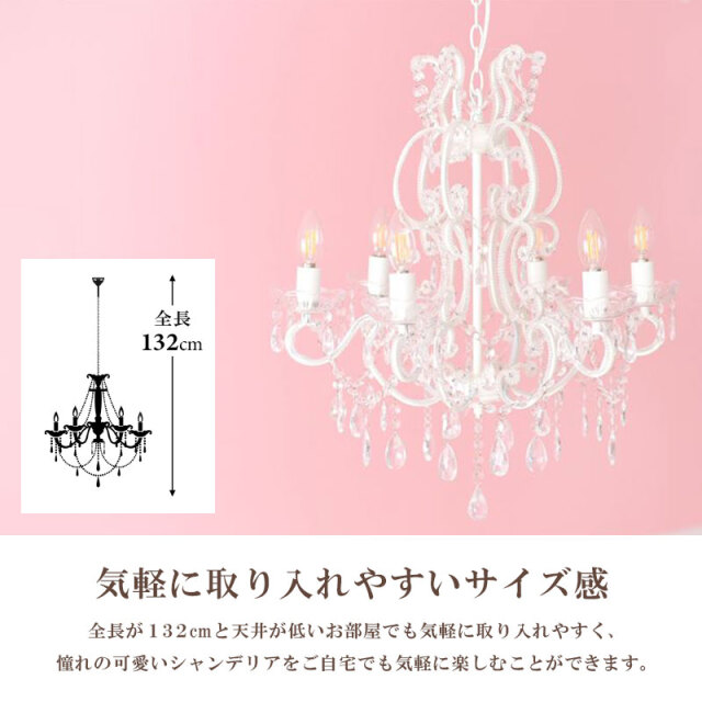 | 概要 | 白にこだわった 輸入家具屋のシャンデリア! 王道のクリアなシャンデリアの光を感じてください。 お部屋の雰囲気を素敵に変える、女性の憧れ!「SAお手軽シャンデリア」シリーズです。 軽量・簡単取付・LED電球付き・リーズナブルなプライスが嬉しい限りです。 |
