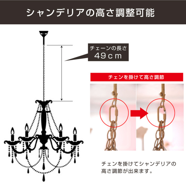 | 対応する電球 | 付属品:LED電球(口金E12/110V/6W)×8灯 白熱電球の場合(1灯)110V/MAX40W |