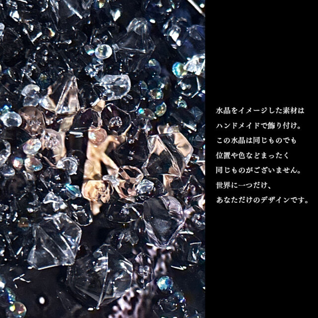 | 特徴 | ・水晶はハンドメイドで飾りつけし、高級感と立体感にこだわりました。 ・太陽光や照明の光を複雑に透過や屈折で光の乱舞を作り出して楽しむことができます。 ・飾る場所の照明の色味によって雰囲気が変わります。 ・上品なシルバーカラーのフレームと裏面紐付き。 |