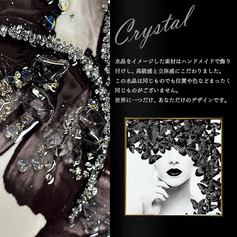 【商品について】 水晶パネル SX192 ■製品寸法 幅50×奥行4×高さ50(cm) ■注意事項 ・ハンドメイドでの貼り付けのため、水晶風パーツの個数・配置に個体差がございます。 ・本商品には重量がございます。壁掛けて取り付け頂く際は必ず、壁の心材がある場所にボルトなどで固定してください。 ・本商品の特性上、輸送中の振動により装飾の一部が取れる場合がございます。予めご了承ください。 【送料について】 ・送料無料 ただし、東北・北海道・沖縄・離島へのお届けにつきましては送料無料対象の場合も追加送料が必要となります。 また、開梱設置サービスをご利用の場合、送料とは別に料金が必要です。ご注文前にお問い合せください。 追加料金が必要な場合、買い物カゴでは再計算されません。料金確定後、こちらからご連絡させていただきます。 【キーワード】 絵 イラスト おしゃれ 高級感 モダン 蝶 ちょうちょ チョウ 絵画 北欧 アートポスター インテリア 芸術 雑貨 アート タペストリー 水晶絵 水晶 50×50 正方形 飾る 壁掛け 床置き 棚置き ラウンジ リビング エントランス ベッドルーム 寝室 玄関 美容室 美容院 待合室 サロン