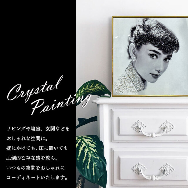 【商品について】 水晶パネル KH245 ■製品寸法 幅50×奥行4×高さ50(cm) ■注意事項 ・ハンドメイドでの貼り付けのため、水晶風パーツの個数・配置に個体差がございます。 ・本商品には重量がございます。壁掛けて取り付け頂く際は必ず、壁の心材がある場所にボルトなどで固定してください。 ・本商品の特性上、輸送中の振動により装飾の一部が取れる場合がございます。予めご了承ください。 【送料について】 ・送料無料 ただし、東北・北海道・沖縄・離島へのお届けにつきましては送料無料対象の場合も追加送料が必要となります。 また、開梱設置サービスをご利用の場合、送料とは別に料金が必要です。ご注文前にお問い合せください。 追加料金が必要な場合、買い物カゴでは再計算されません。料金確定後、こちらからご連絡させていただきます。 【キーワード】 絵 イラスト おしゃれ 高級感 モダン オードリー・ヘプバーン 絵画 北欧 アートポスター インテリア 芸術 雑貨 アート タペストリー 水晶絵 水晶 50×50 正方形 飾る ラウンジ リビング エントランス ベッドルーム 寝室 玄関 美容室 美容院 待合室 サロン 銀 白 黒 ホワイト ブラック シルバー