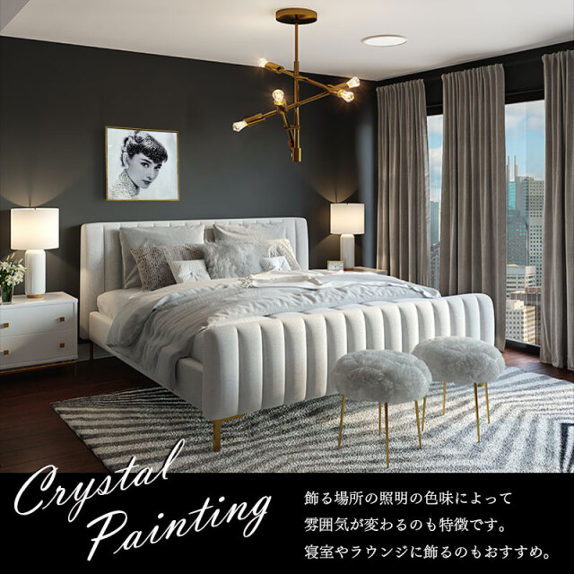 | 注意 | ・ハンドメイドでの貼り付けのため、水晶風パーツの個数・配置に個体差がございます。 ・本商品には重量がございます。壁掛けて取り付け頂く際は必ず、壁の心材がある場所にボルトなどで固定してください。 ・本商品の特性上、輸送中の振動により装飾の一部が取れる場合がございます。予めご了承ください。 |